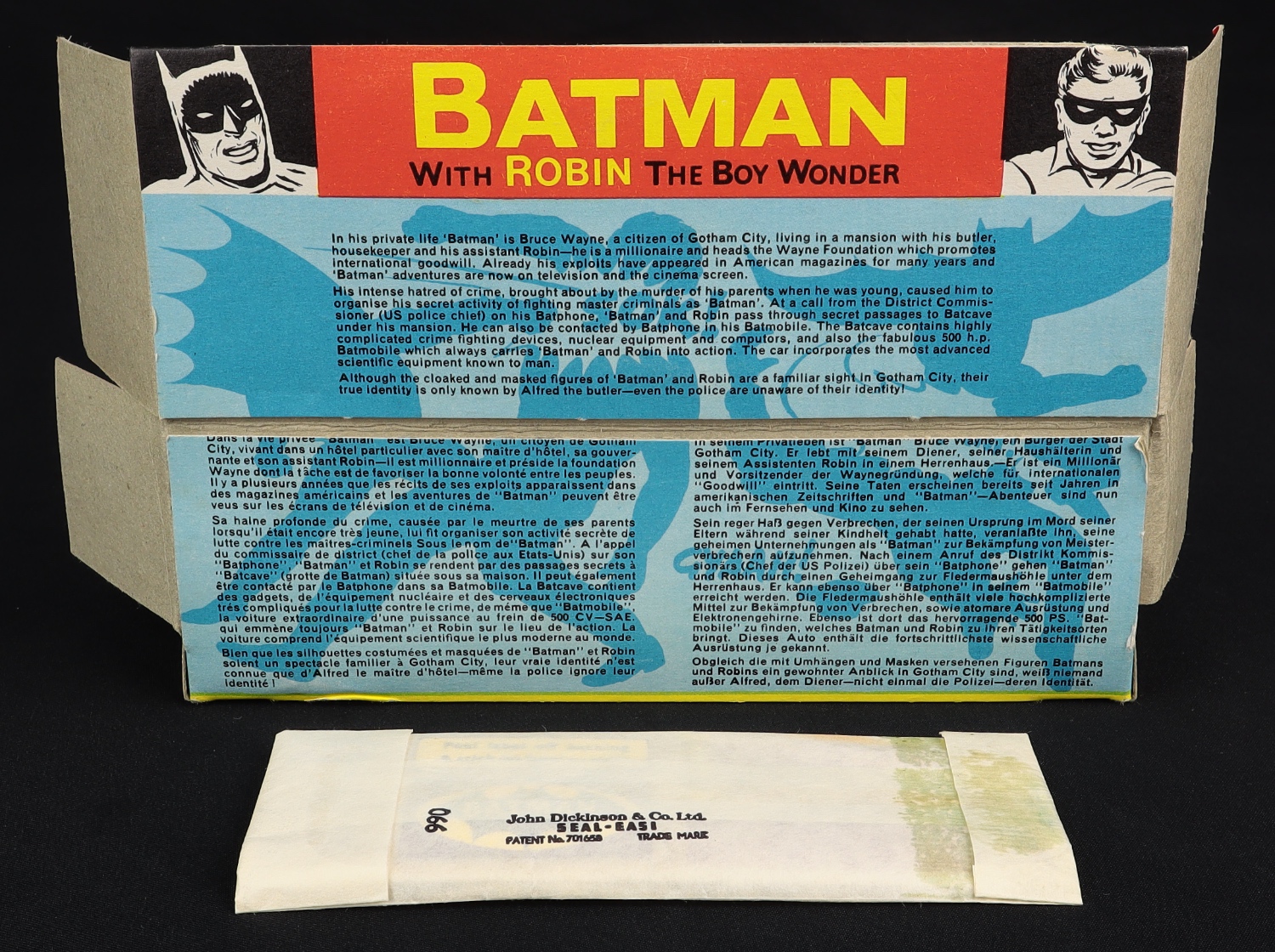 Batman's Batmobile by Corgi Toys, No. 267. Near mint/boxed. Most sought-after 1st issue, correct without tow hook. With all accessories & all packing. From The Elmer Collection. Starting bid £200. Please note that QDT apply 12.5% buyer's commission.