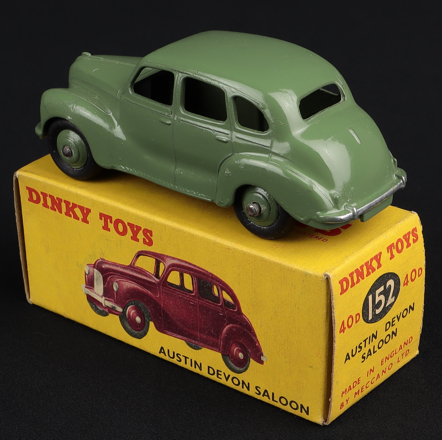Austin A40 Devon by Dinky Toys, No. 40D 152. Suede green with matching wheels. Very near mint/boxed. Nice box! From The Reference Collection.