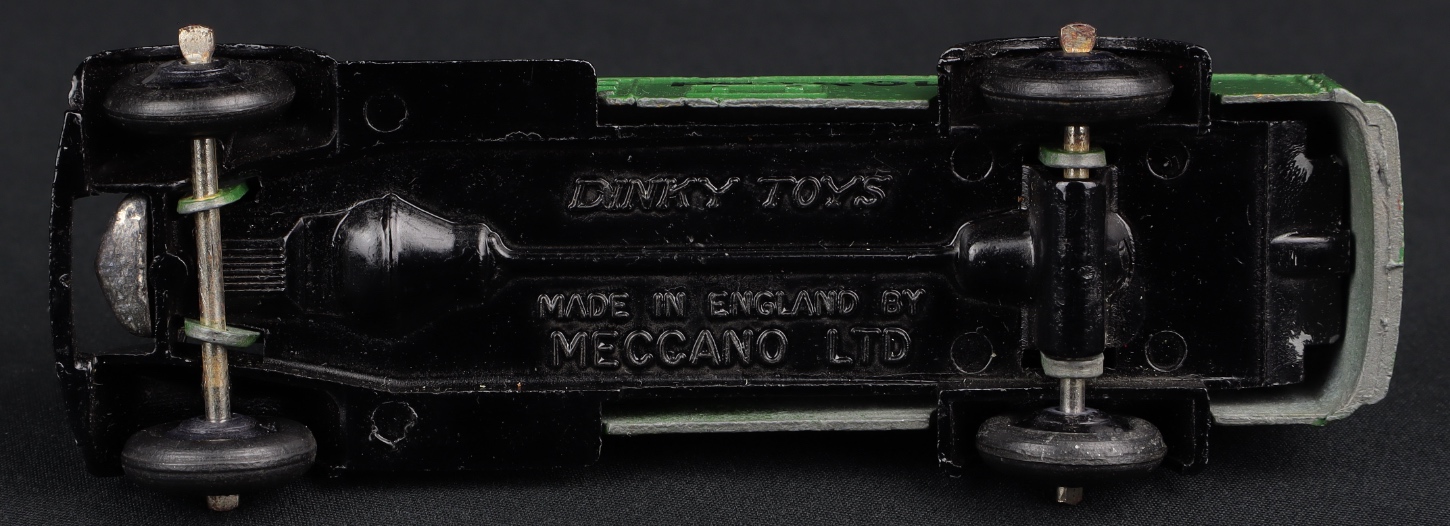 This type 4 version of the Petrol Tank Wagon in deep green and black with front bumper detail would have been sent to the shopkeeper in trade boxes, so not individually boxed. With black ridged wheels.