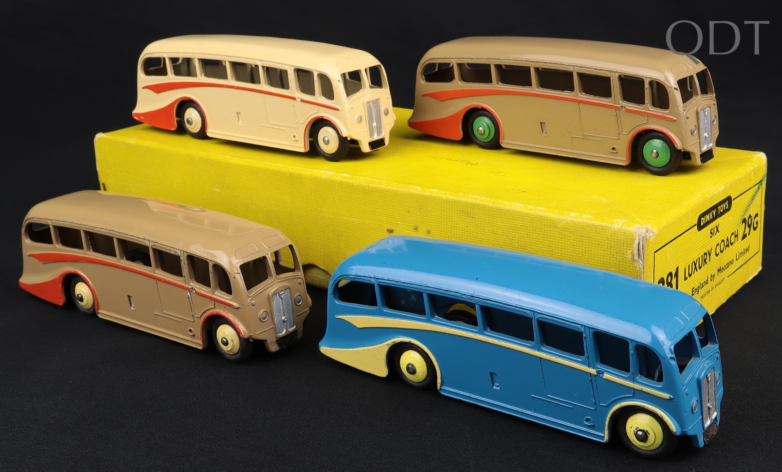 4 x Dinky Toys, No. 29G Luxury Coaches in original Trade Box. Very near mint. Scarce item from The Denis Tyler Collection. Starting bid £200. Please note that QDT apply 12.5% buyer's commission.