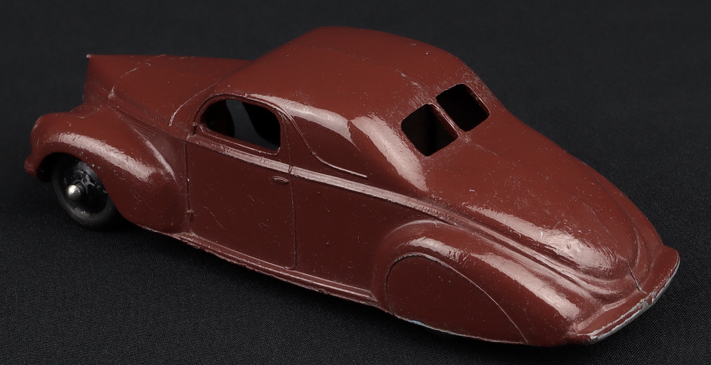 Lincoln Zephyr Coupe by Dinky Toys, No. 39C. Rich deep brown. Very near mint/never boxed individually. From The Dutch-Hillman Collection.
