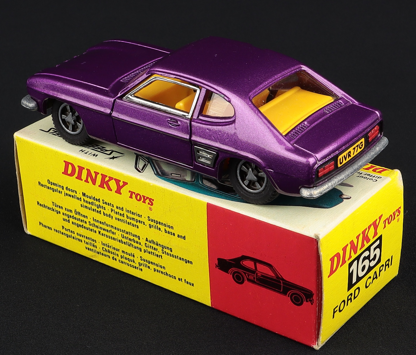 Ford Capri by Dinky Toys, No. 165. Very near mint/boxed. Metallic purple issue. Scarce. From The Reference Collection.