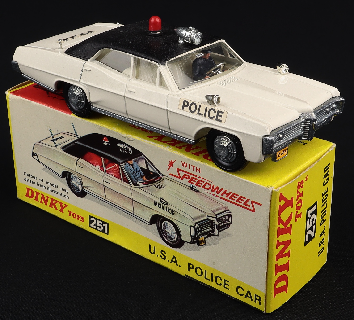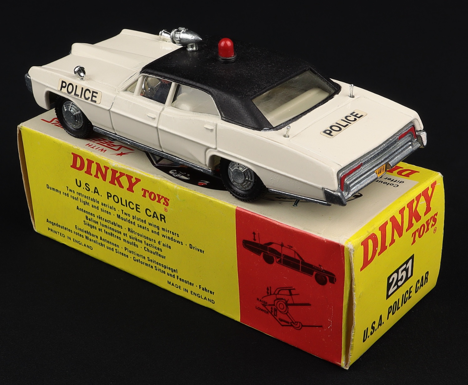 USA Pontiac Parisienne Police Car by Dinky Toys, No. 251. Very, very near mint/boxed, with both chromed aerials. From The Eccles Collection.