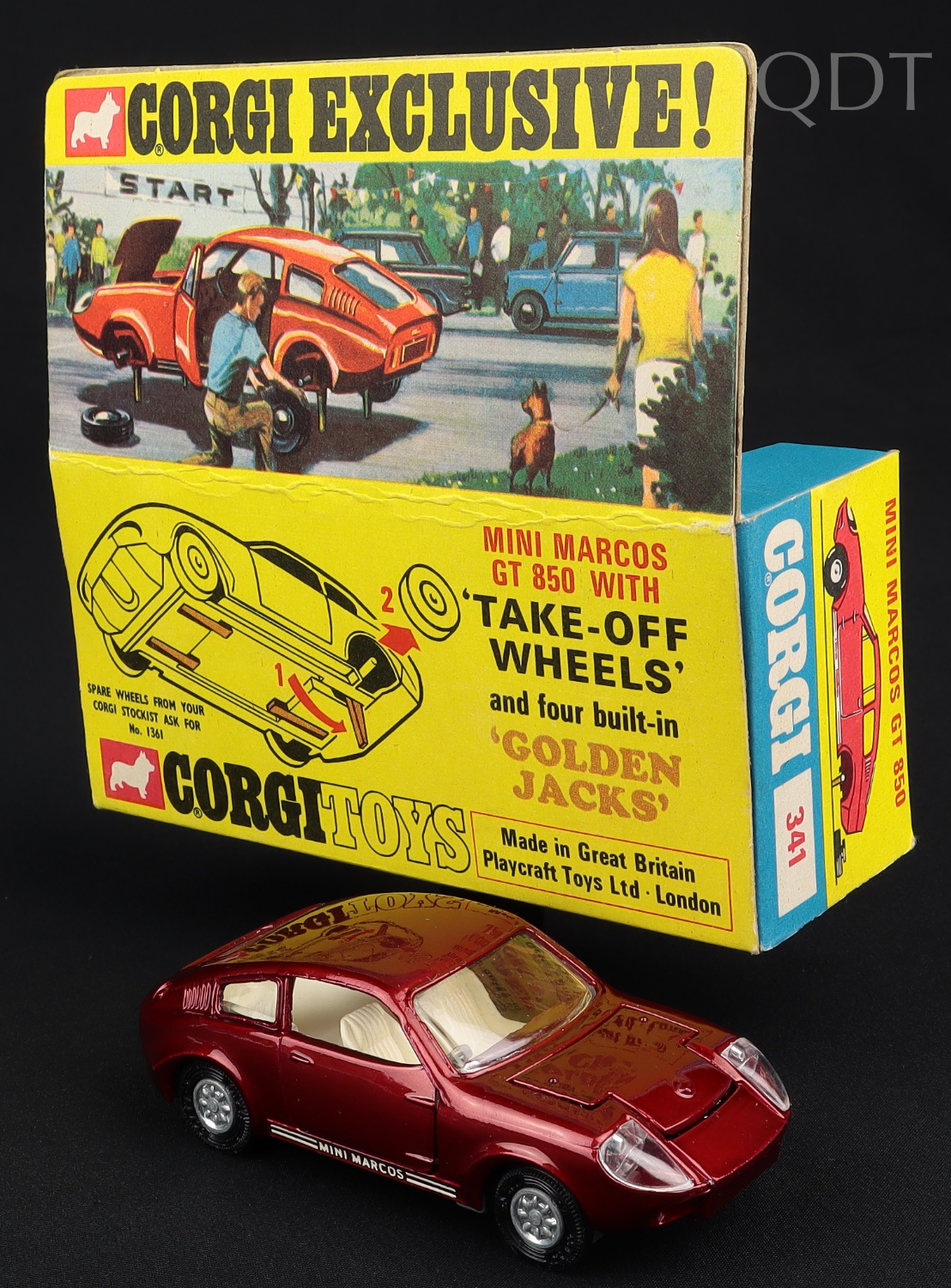 Mini Marcos by Corgi Toys, No. 341. Version with silver Golden Jacks. Very, very near mint/boxed. From The Elmer Collection.