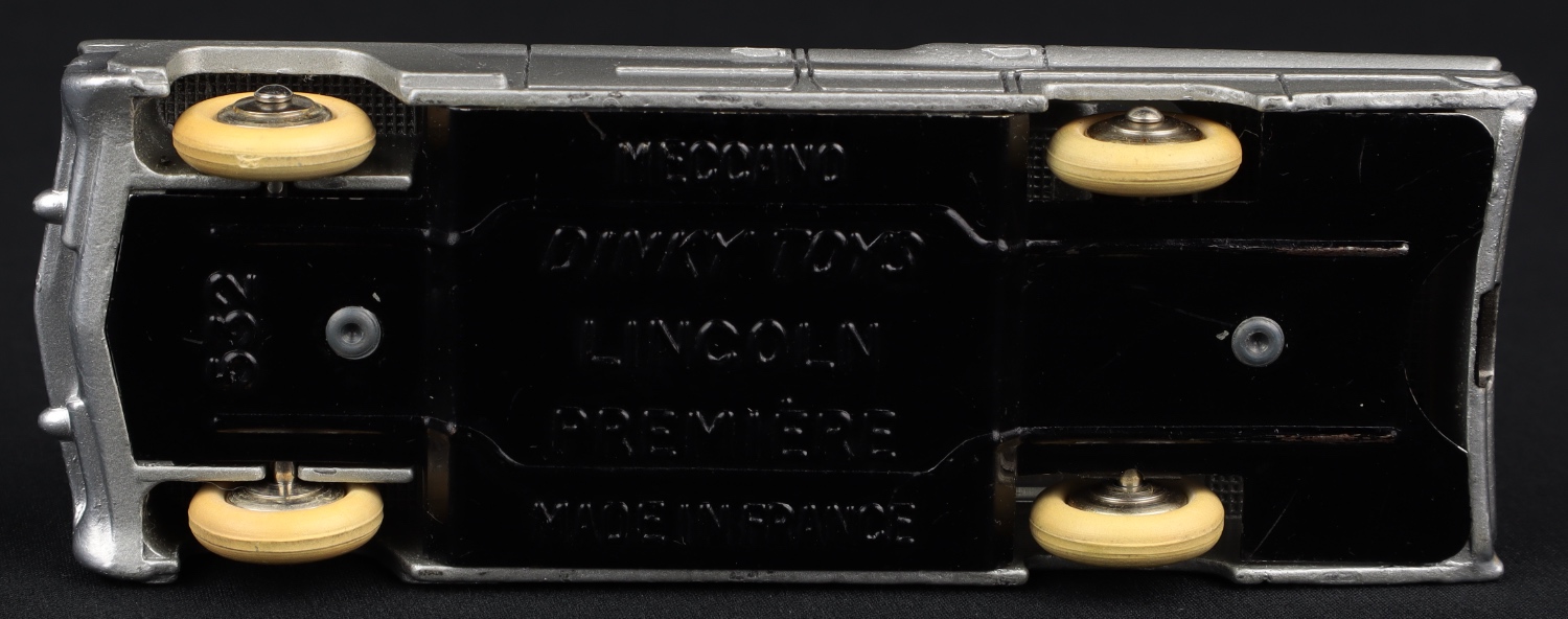 A scarce Lincoln Premiere model from the French Dinky factory! This model has a sleek silver body with a plum red roof, shiny convex wheels and smooth white tyres (well-shaped).