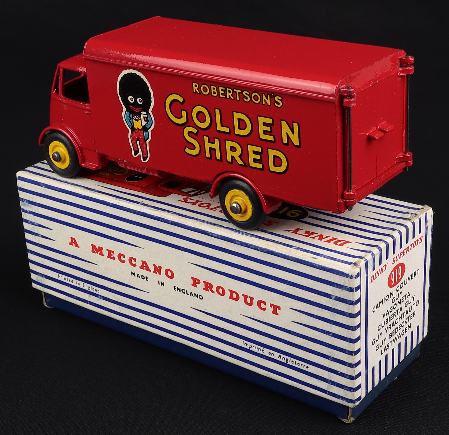 Guy Van "Golden Shred" by Dinky Toys, No. 919. Very near mint/boxed. From May, 1957. One of the most eye-catching Dinky Advertising Vans. From The Dutch-Hillman Collection. QDT starting bid £500. Please note that QDT apply 12.5% buyer's commission.