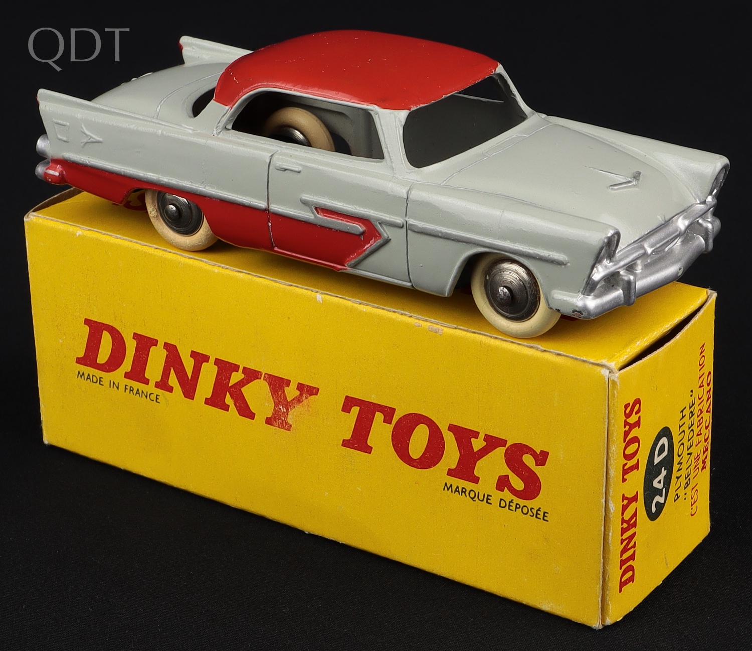 Plymouth Belvedere by French Dinky Toys, No. 24D. Red & grey. Very near mint/boxed. From The Dutch-Hillman Collection. QDT starting bid £150. Please note that QDT apply 12.5% buyer's commission.