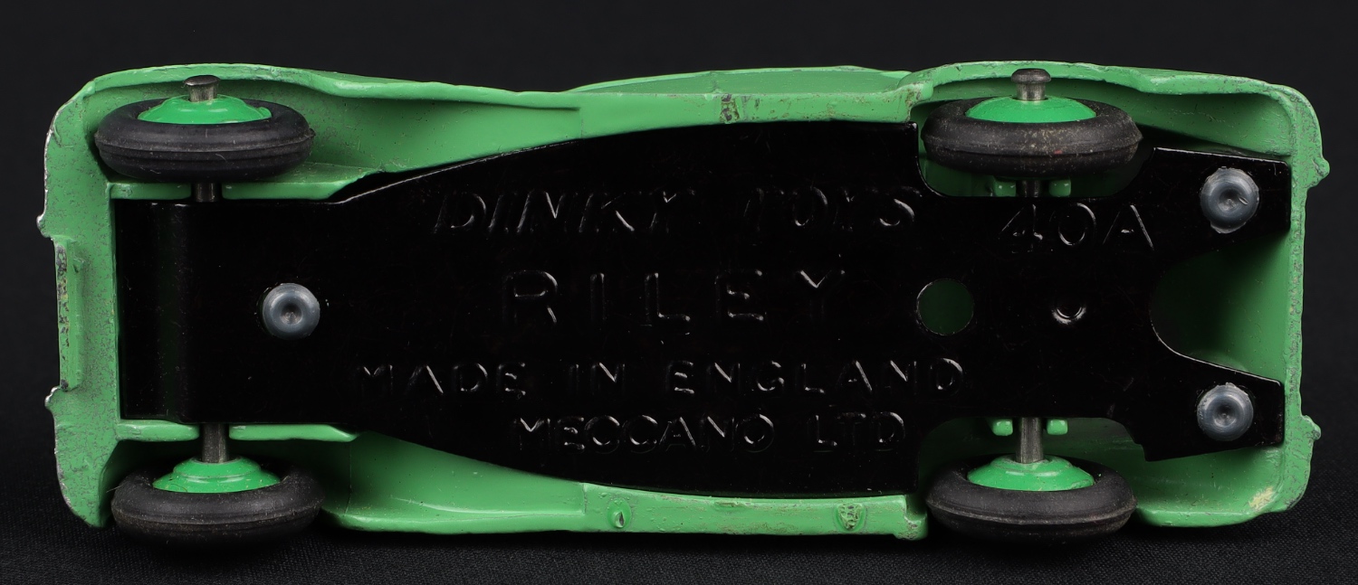 Riley Saloon by Dinky Toys, No. 158. Green issue, with smooth tyres. Very near mint/boxed. From The Dutch-Hillman Collection.