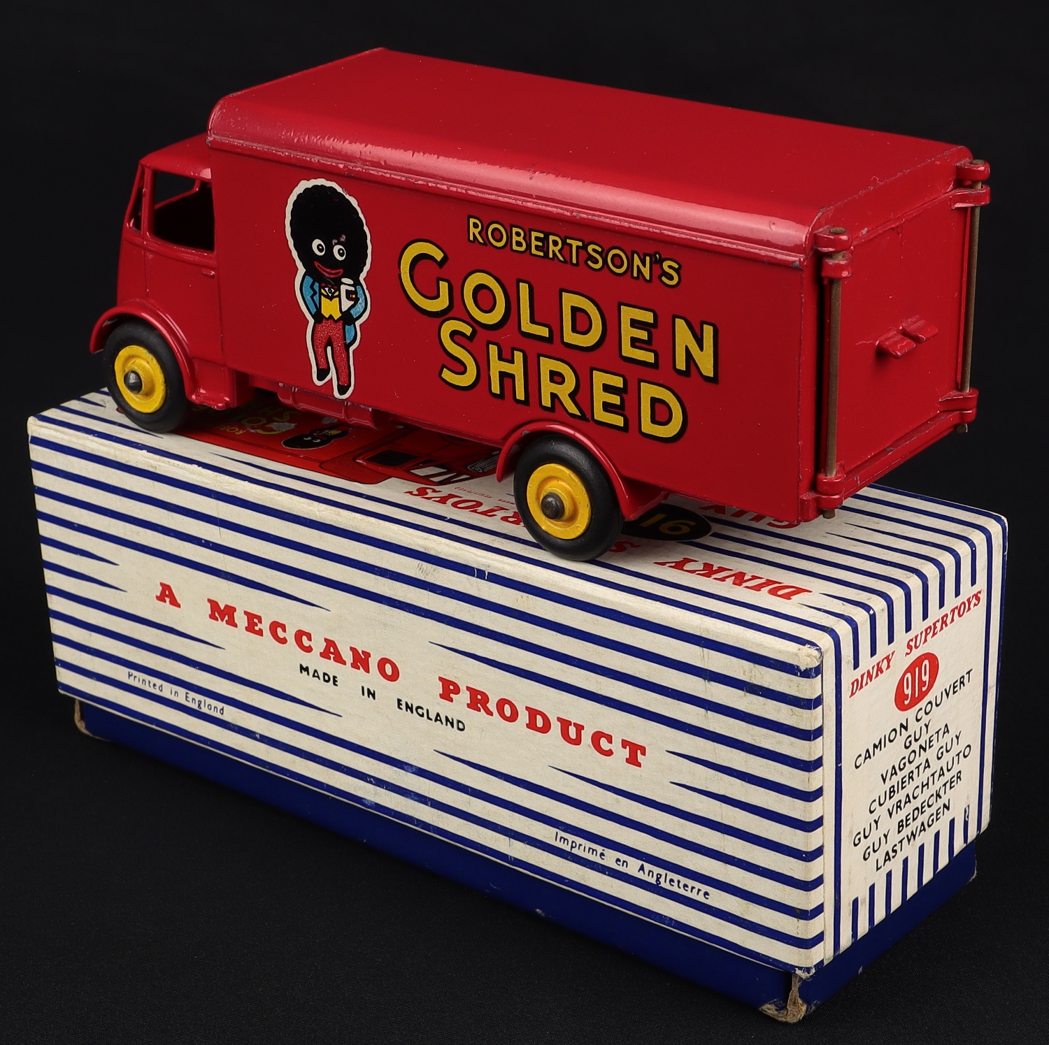 Guy Van "Golden Shred" by Dinky Supertoys, NO. 919. Near mint plus/boxed. From 1957. One of the most eye-catching Dinky Advertising Vans.