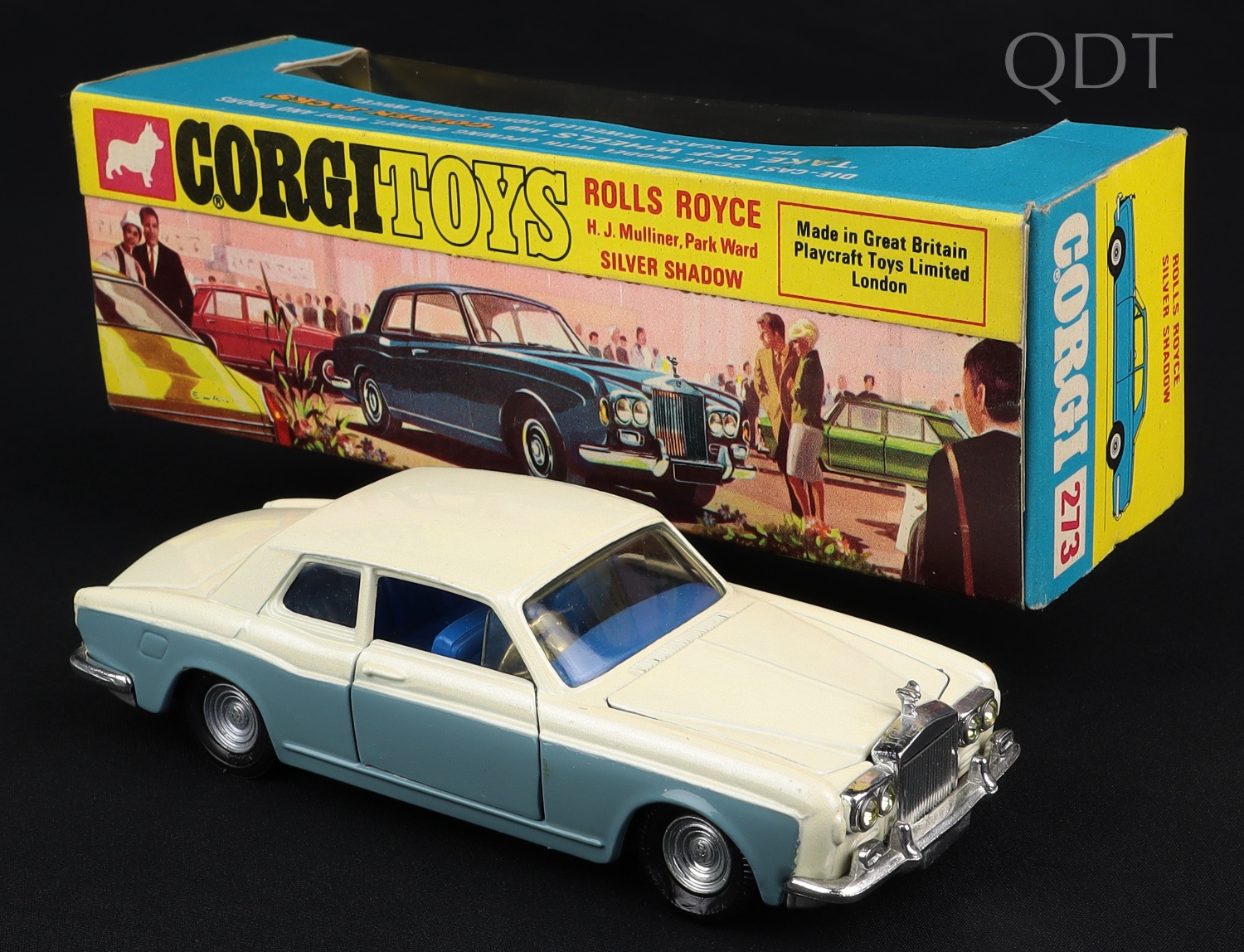 Rolls Royce Silver Shadow by Corgi Toys, No 273. Pearlescent white & Wedgwood blue. Very, very near mint/boxed. From The Elmer Collection.