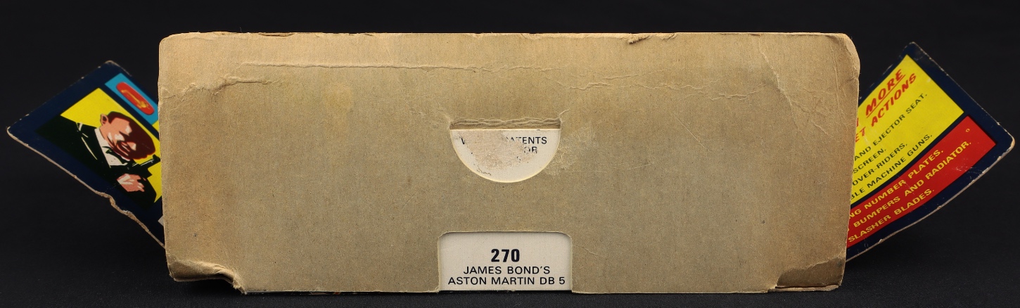James Bond Aston Martin by Corgi Toys, No. 270. Mint/boxed. DARK RED SEATING VERSION. Most decorative 'Winged' box first issue. Complete with all original accessories. From The Hampshire Collection.