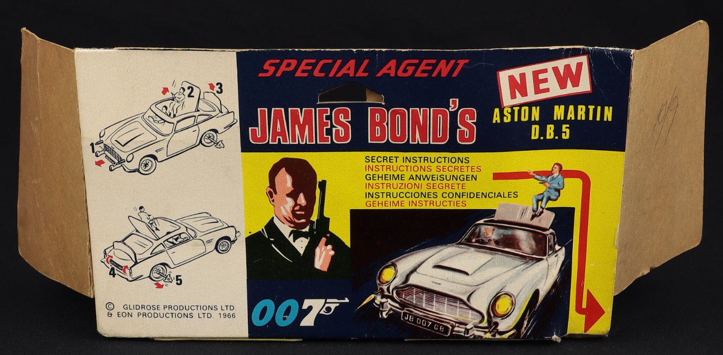 This sought-after James Bond Aston Martin model in silver is in complete and totally original condition, and always the most sought-after in this eye-catching box presentation.