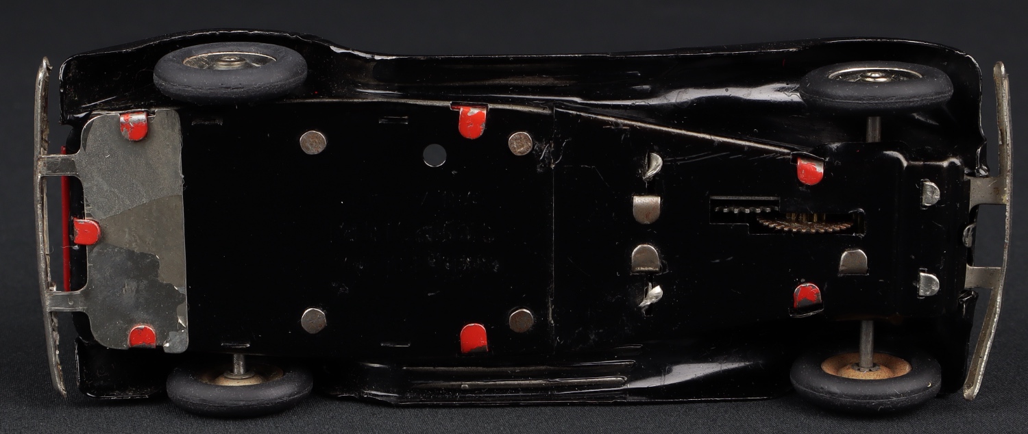 Tri-ang Minic 37M Bentley Tourer. Red & black, white seating. Working clockwork model. With original Minic Key. Very near mint/boxed. Scarce. From The Denis Tyler Collection. QDT starting bid £100. Please note that QDT apply 12.5% buyer's commission