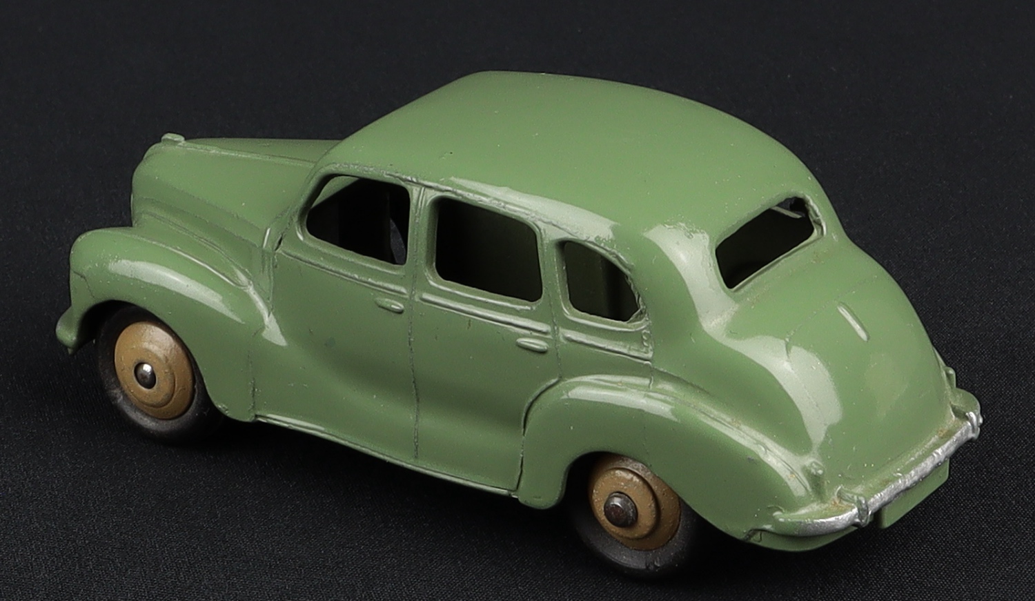 Austin Devon Saloon by Dinky Toys, No. 40D 152. Very near mint. Scarce issue in SUEDE GREEN with FAWN wheels. From The Dutch-Hillman Collection.