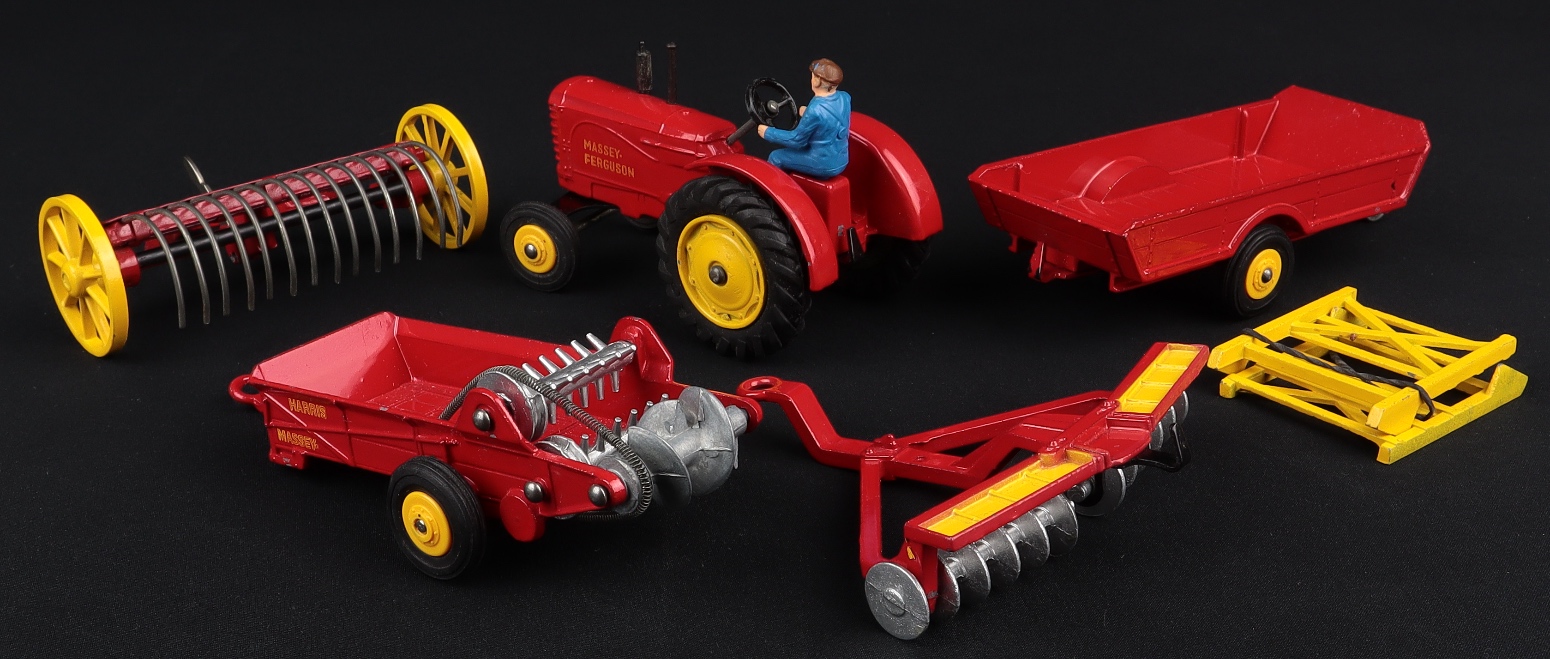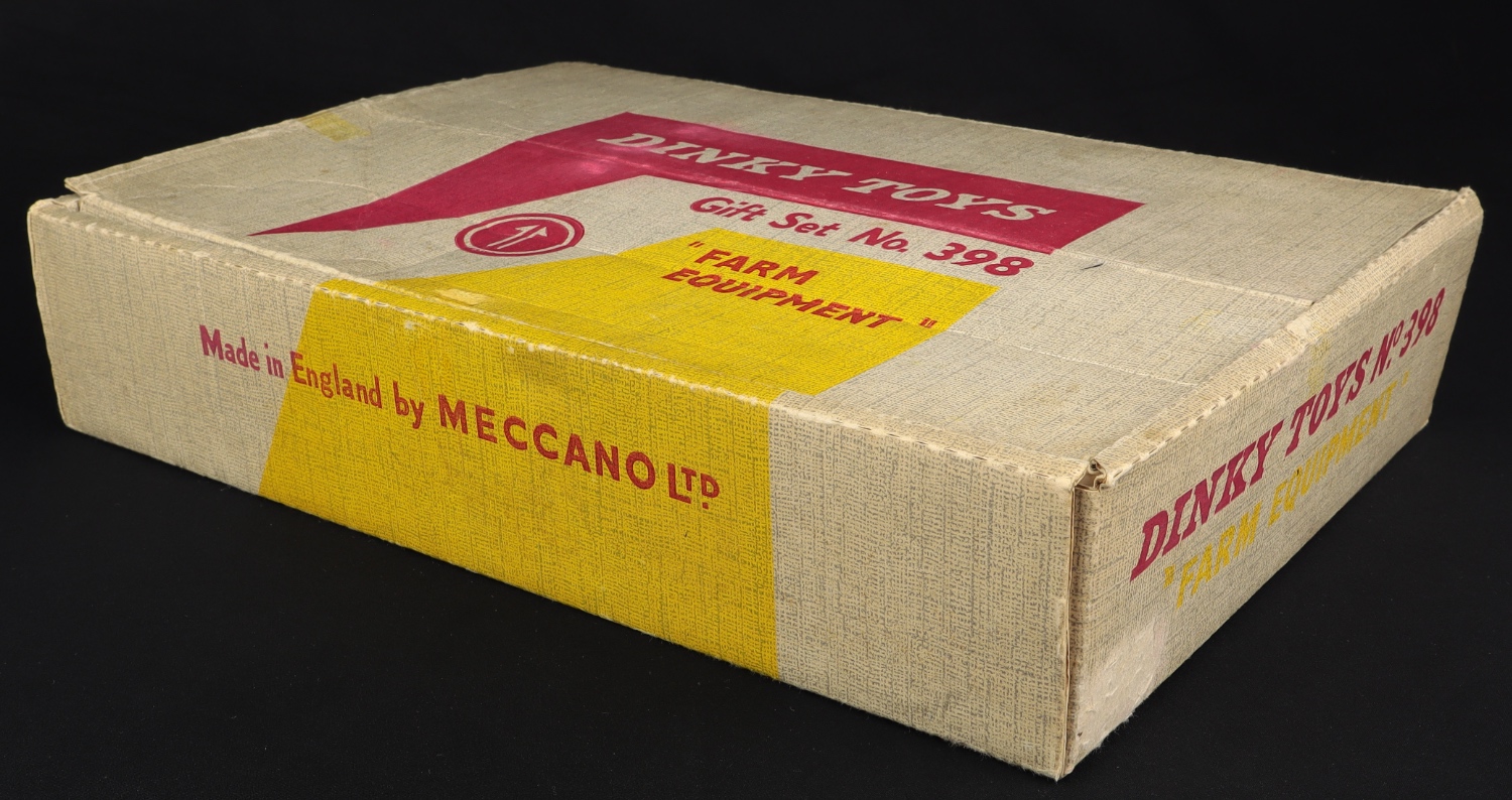 Farm Equipment by Dinky Toys, Gift Set 398. Scarce 5-Piece Set from The Heart of England Collection. Very near mint/nice Presentation Box. From The Heart of England Collection. Starting bid £400. Please note that QDT apply 12.5% buyer's commission.