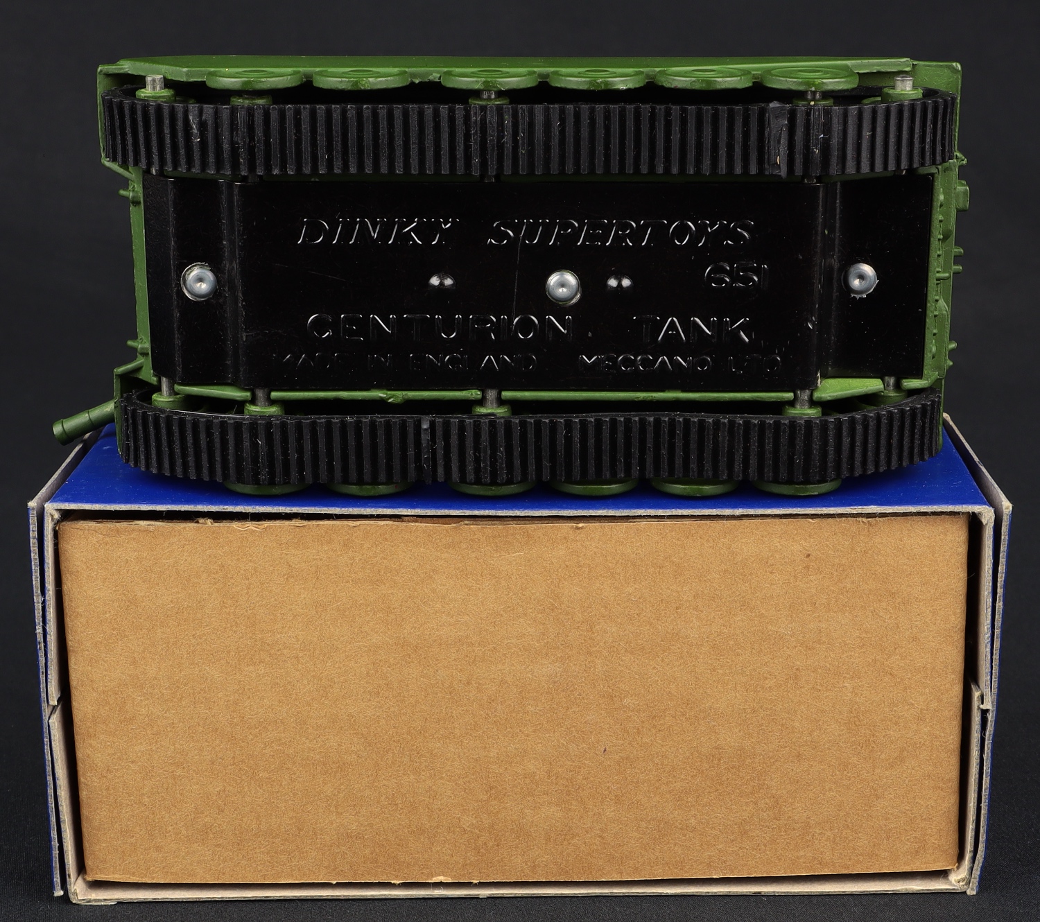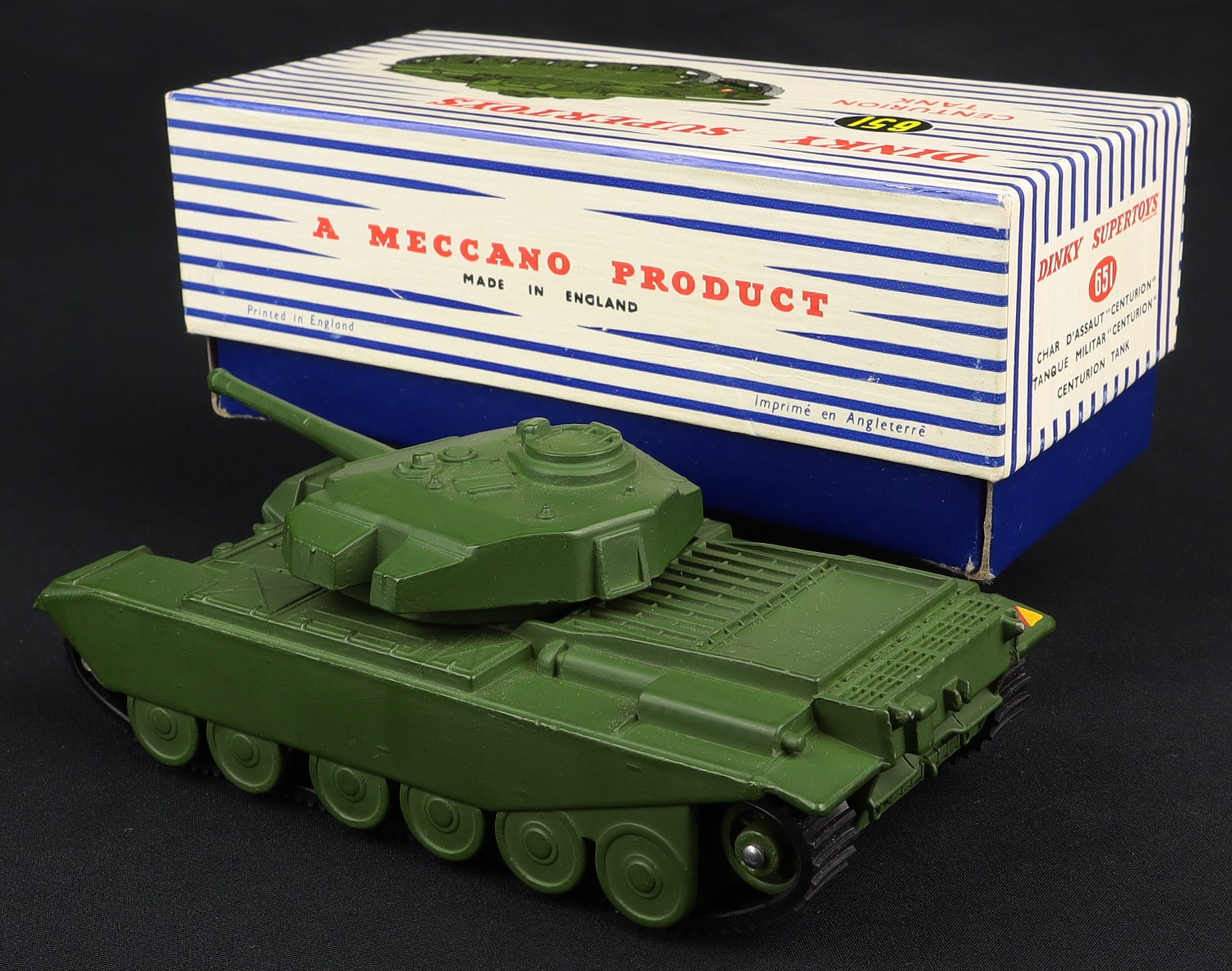 Centurion Tank by Dinky Supertoys, No. 651. Matte military green. 'DINKY SUPERTOYS' PRINTED ON BOX. Very near mint/boxed, with packing. From The Berlin Collection.