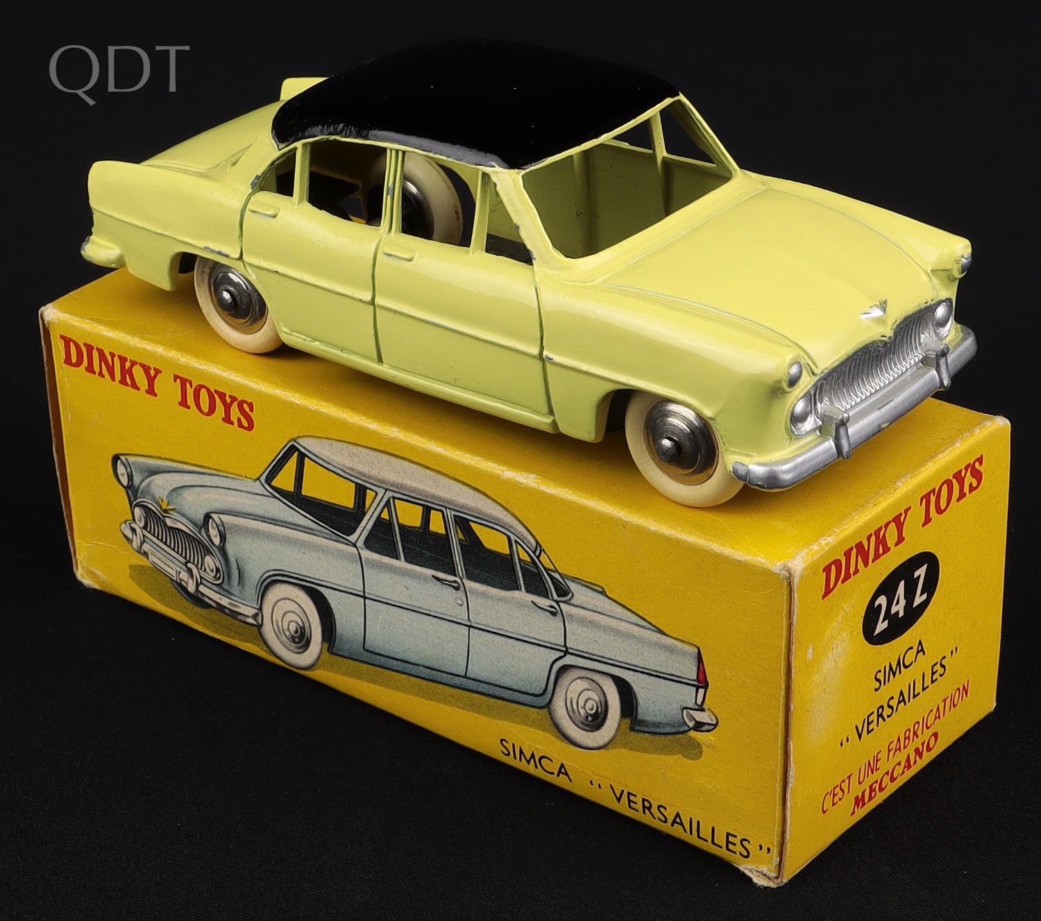 Simca "Versailles" by French Dinky Toys, No. 24Z. Lemon & black . 2nd type WITH towing eye. Very near mint/boxed. From The Dutch-Hillman Collection.