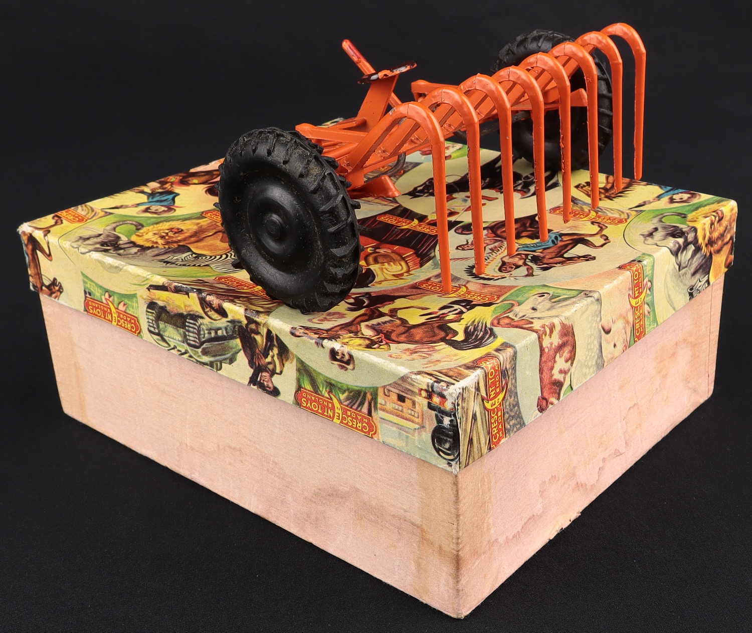 Hayrake in a Box by Crescent Toys, No. 1806. Very near mint/boxed. Scarce early 1950's piece from The Denis Tyler Collection. Starting bid £75. Please note that QDT apply 12.5% buyer's commission.