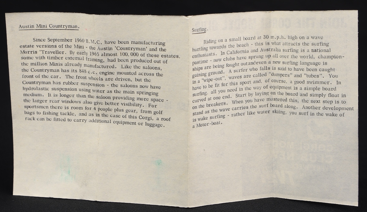 Corgi toys 485 surfing mini ll287 leaflet