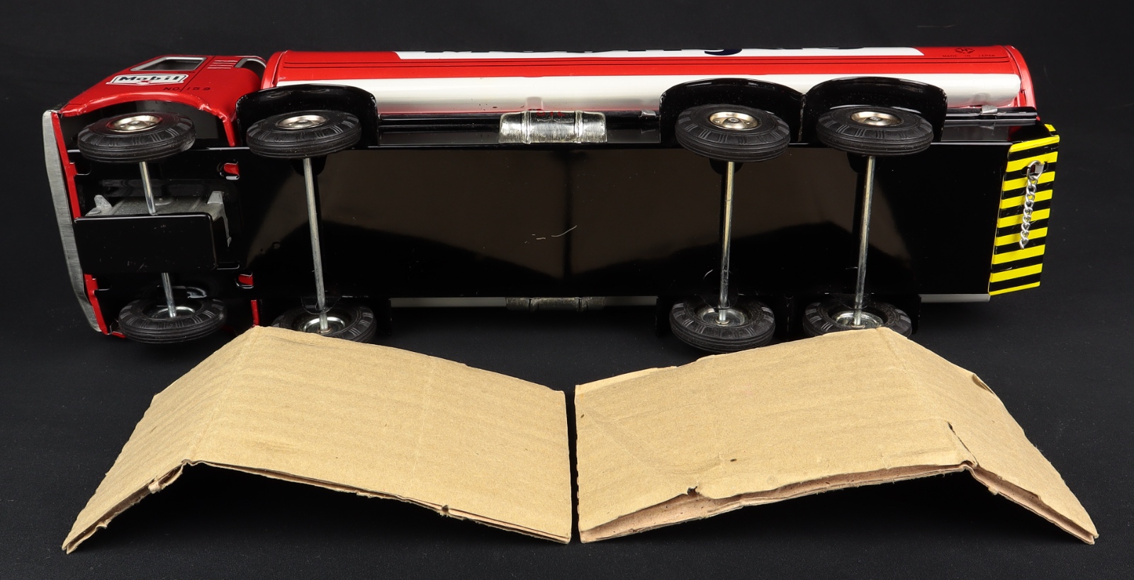 Mobilgas Tank Truck by Horikawa Models, No. 194. Vintage Japanese Friction Toy. Large scale. Very near mint/boxed, with card packing. Superb example! From The Reference Collection. Collection. Starting bid £150. Please note that QDT apply 12.5% buyer's commission.