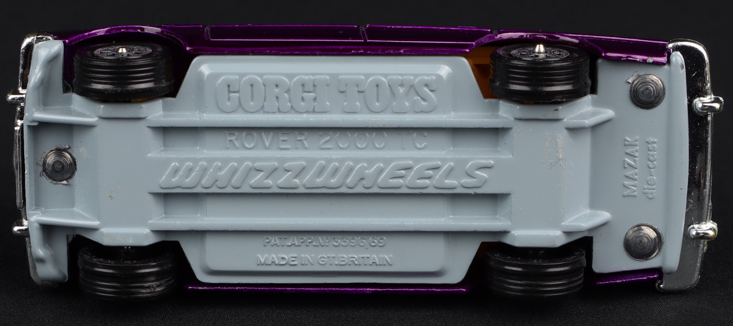 Rover 2000 TC by Corgi Toys, No. 281. Vibrant mid-metallic purple. Scarce issue. Near mint plus/boxed. From The Rickman Collection.