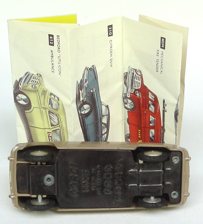 Corgi 200 Ford Consul. Very near mint/boxed. Early issue in grey-brown. Includes colour Promotional Booklet. From The Cheshire Collection.