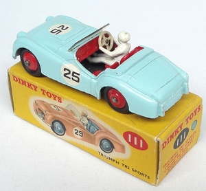 Dinky 111 Triumph TR2 Sports.Near mint plus/boxed. Rare LIGHT BLUE (not turquoise) version. Another exciting piece from The East Netherlands Collection.