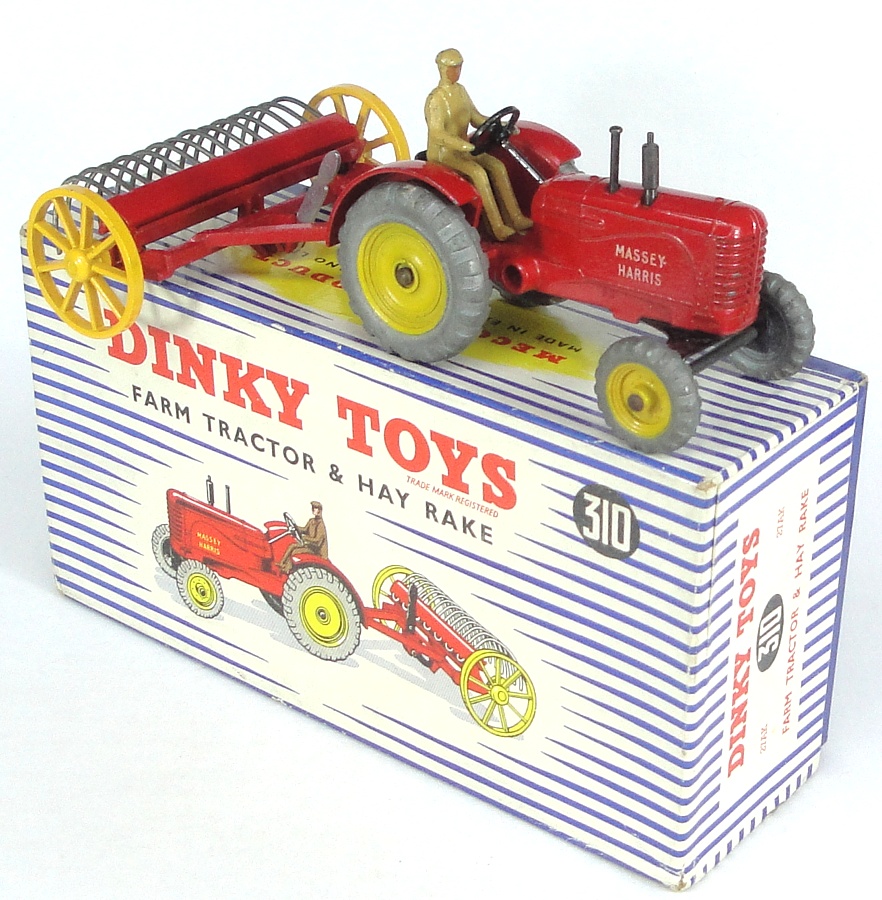 Dinky 27AK/310 Farm Tractor & Hay Rake. Excellent plus-very near mint/boxed. From 1954. Scarce, early issue. With packing. From The Reference Collection of high quality models compiled in The U.K.