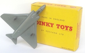 Camouflage finish on this delta-winged jet, with perfect-very near perfect transfers (complete roundels). Smooth-running little metal wheels underneath.