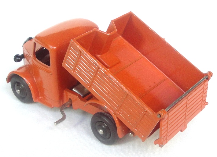 In fine, all original condition with a distinctive burnt orange paint finish throughout and black ridged wheels. This scarce Dinky truck presents very well with bright metal parts (winding handle, baseplate, axles, including ends). Little rub on the roof. Few little marks at the rear of the truck. Occasional little mark at a raised edge/body line raised detail.
