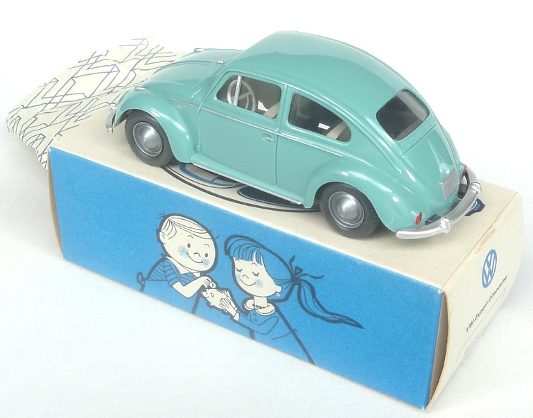Wiking VW Export Limousine (Beetle). Turquoise issue. Scarce PROMOTIONAL model. High-quality plastic construction. Mint/boxed. With original VW wrapping tissue. From a truly outstanding collection in Hamburg.
