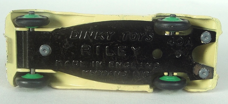 Dinky 40A/158 Riley Saloon. Cream version with bright mid-green wheels. Near mint plus/not boxed. From The Canadian Collection.