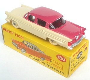 Dinky 180 Packard Clipper. Cerise & cream, cast wheel version. Very near mint/boxed. From The Reference Collection.