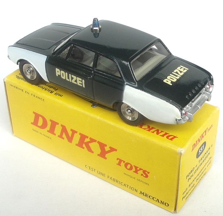 French Dinky 551 Ford Taunus 17M Police Car. Very, very near mint/boxed. Very scarce German export model.
