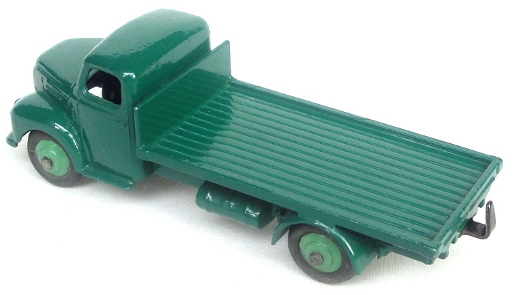 A fine unboxed example of this classic Dinky truck with an original and lustrous deep green finish, paler green wheels, smooth tyres. Bright baseplate and button-ended axles. Mark at a rear edge and a few smaller marks besides. Issued 1954-60 after its renumbering from 30R. Bright base and axles. Smooth running original tyres.
