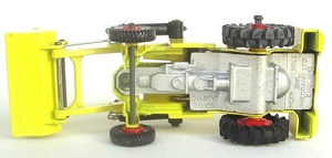 Issued between 1962-70, this model has a very bright and shining yellow finish with red wheels (rear wheels are metal, front are plastic). One front wheel has reacted ever so slightly with the rubber tyre over time (common fault). Driver and window glazing. Complete ‘Taylor Woodrow’ label at the rear (little end ruffle).