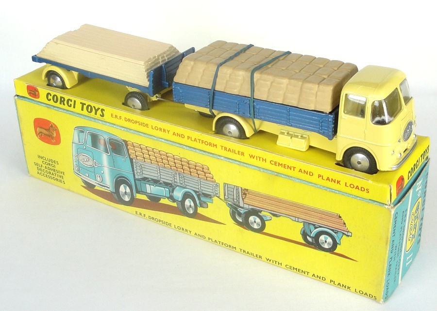 Corgi Gift Set 11 ERF Dropside Lorry & Platform Trailer with Cement & Plank Loads. Very, very near mint/boxed. With correct still-sealed Accessory Pack 'C'. From a high quality collection in the U.S.