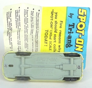 Issued during 1960, this Jensen 541 model is finished in a distinctive pale lemon with a black roof. Shiny shaped spun wheels. Lose to mint paint finish, but do note that 3 of the ‘tyres’ have a little piece missing.