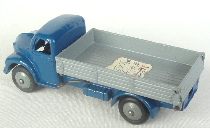 This scarce version has a distinctive French blue cab and chassis, mid-grey back and darker grey wheels. Smooth tyres run well. A fine lustre to the paint finish, a shiny baseplate and metal parts generally, including the axle ends.