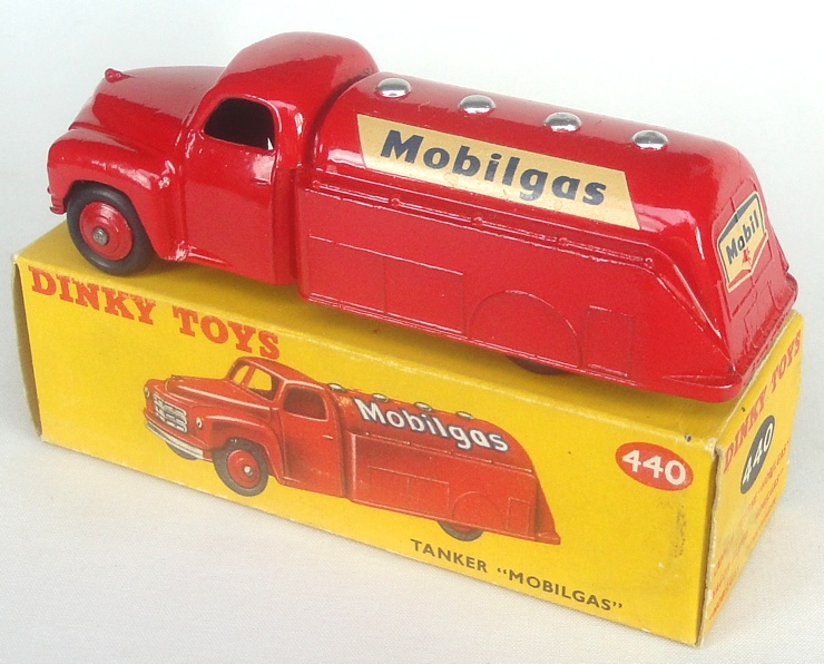 Dinky 440 Tanker 'Mobilgas'. Very near mint/boxed. Scarce issue with DARK BLUE 'MOBILGAS' lettering and smooth tyres. From a beautiful, single-owner collection, some 25 years in the making.