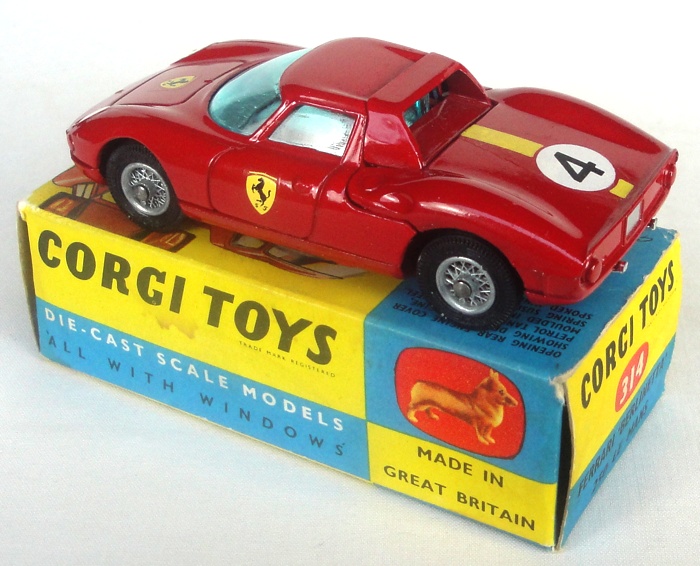 Corgi 314 Ferrari 'Berlinetta' 250 Le Mans. Very, very near mint/boxed (wear). First we have handled with FERRARI LABELS ON DOORS. Rare.