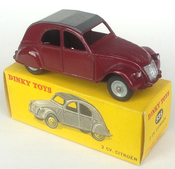 French Dinky 535 Citroen 2CV. Deep reddish-maroon & grey. Very near mint/boxed. From the French Dinky section of The Reference Collection.