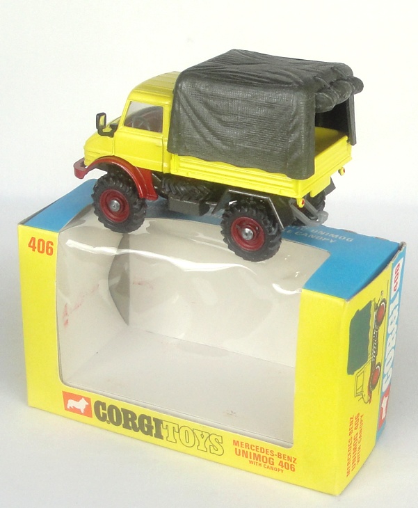 Corgi 406 Mercedes-Benz Unimog 406 with Canopy. Mint/boxed. Early issue. Opened for the 1st time to take these pictures. From a large, stunning diverse collection with many items in old shop stock condition.
