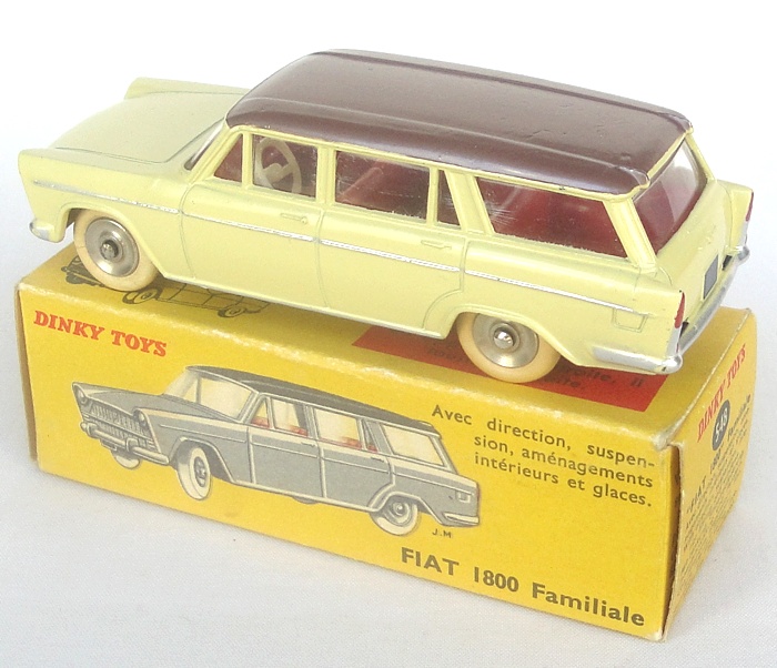 French Dinky 548 Fiat 1800 Familiale Estate Car. Yellow-cream & brown. Near mint plus/boxed. From the French Dinky Section of The Reference Collection.