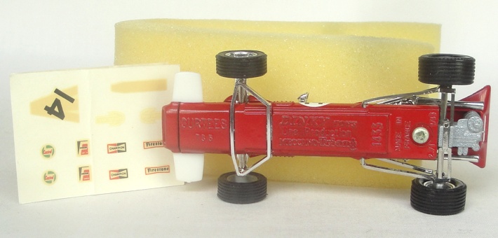 French Dinky 1433 Surtees TS.5 Racing Car. Very near mint/boxed, with transfer sheet. From The French Dinky section of The Reference Collection.