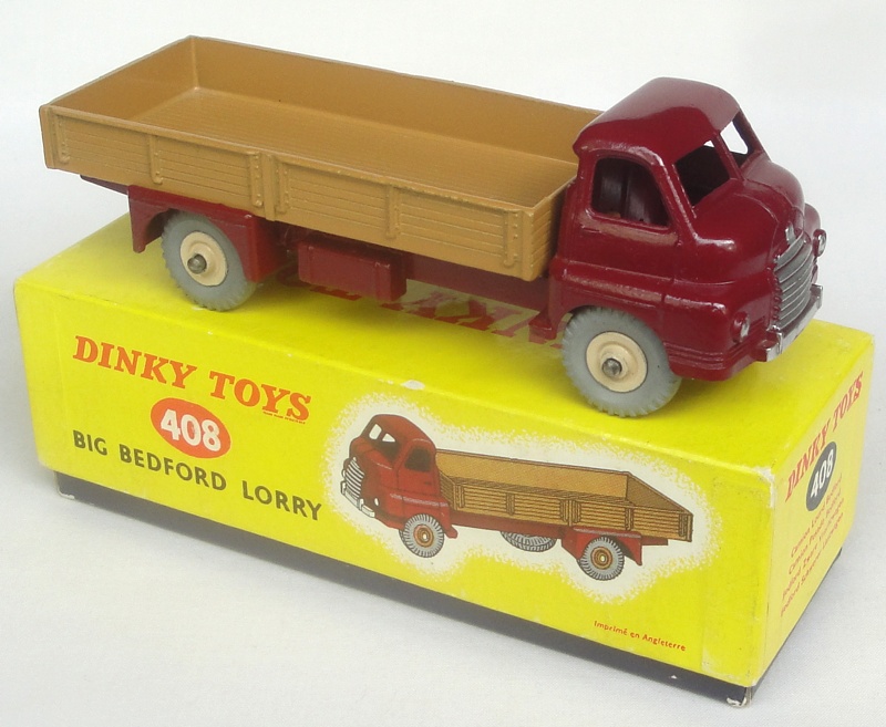 Dinky 408 Big Bedford Lorry. Maroon and mid-tan issue with CREAM WHEELS. Very near mint/boxed. From The East Netherlands Collection.