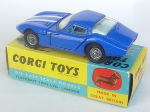 Corgi 324 Marcos 1800 G.T. with Volvo engine. Mid blue version. Very near mint/boxed. Complete with unapplied decal sheet and Corgi Club Membership Form.