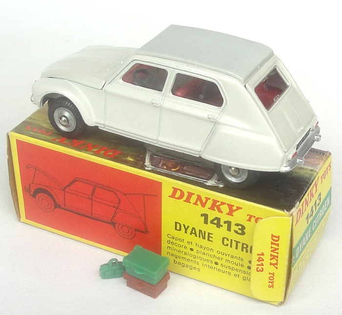 French Dinky 1413 Citroen Dyane. Very pale grey. Very, very near mint/boxed. Complete with luggage. Fine example from The Reference Collection.