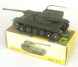 French Dinky 801 AMX 13 Ton Tank. Very near mint/boxed. With aerial, camouflage net and card packing piece. From The Reference Collection.