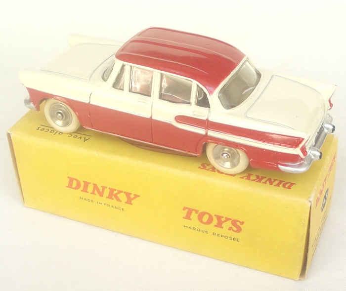 French Dinky 24K Simca Vedette "Chambord". Ivory & dark red issue. Scarce with CONCAVE WHEELS. Near mint plus/boxed. From 'The Swiss-French Collection'.